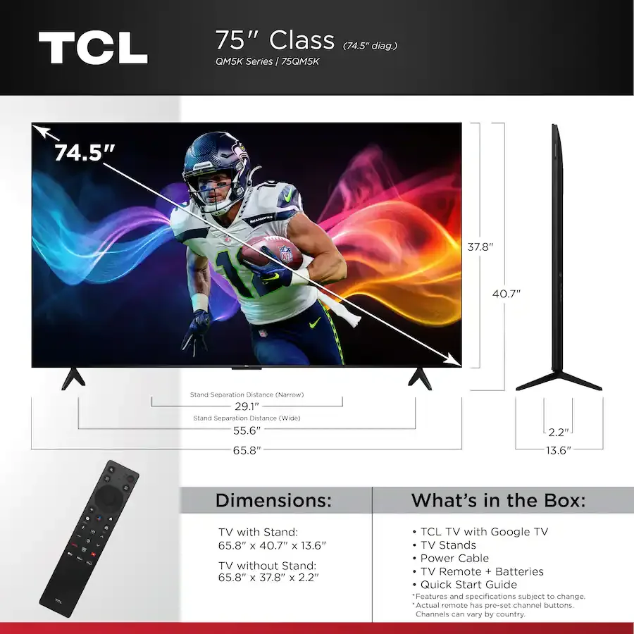 TCL - 75" Class QM5K Series 4K UHD HDR QD-Mini LED Smart TV with Google TV (2025)