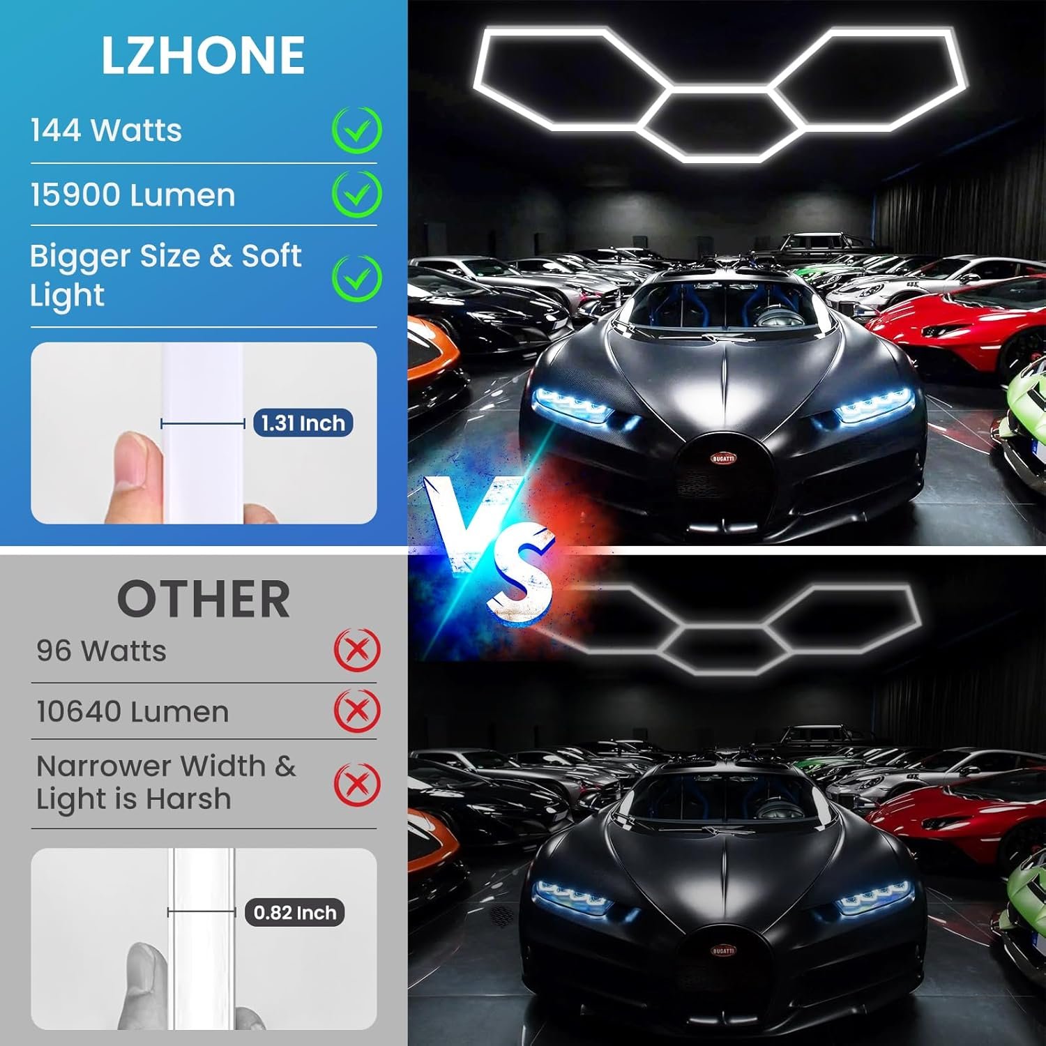 3-PIN DESIGN for HIGH SAFETY: Compared with other products, our hexagonal garage light has redesigned the connector part. In order to prevent fire electric shock on lightning and rainy days, we deliberately use 3-PIN design (including ground wire), which is safe and can be used with confidence.