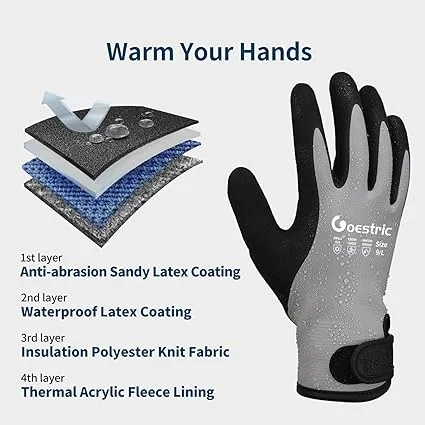 【Waterproof & Windproof】GOESTRIC winter work gloves feature a double-layer fully dipped latex design for exceptional waterproof performance, keeping your hands dry in any environment. They are ideal for rainy, snowy weather.(*It is not recommended to soak gloves in cold water for too long.)