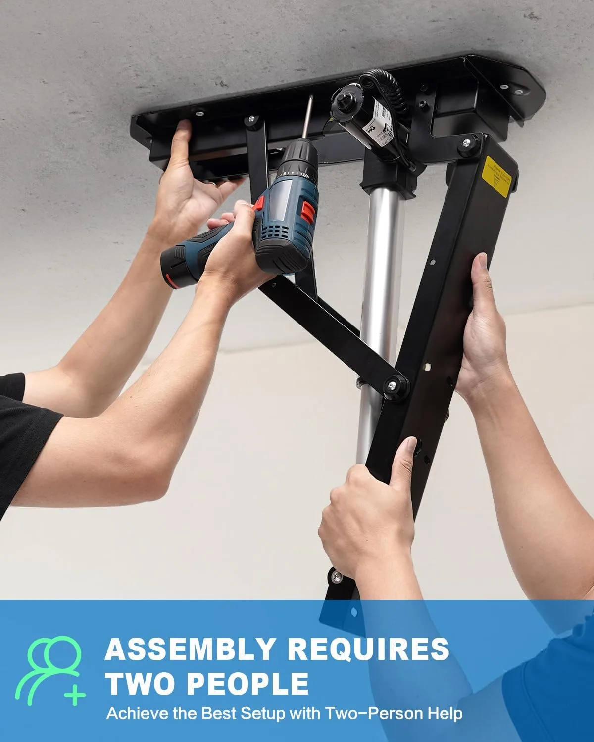 Installation Suggestion:Due to the heavy weight of this ceiling TV mount, we strongly recommend two-person installation. One person should hold the mount in place while the other ensures proper alignment. Before purchasing, carefully check your ceiling structure to ensure compatibility. Incorrect ceiling support may result in installation failure.