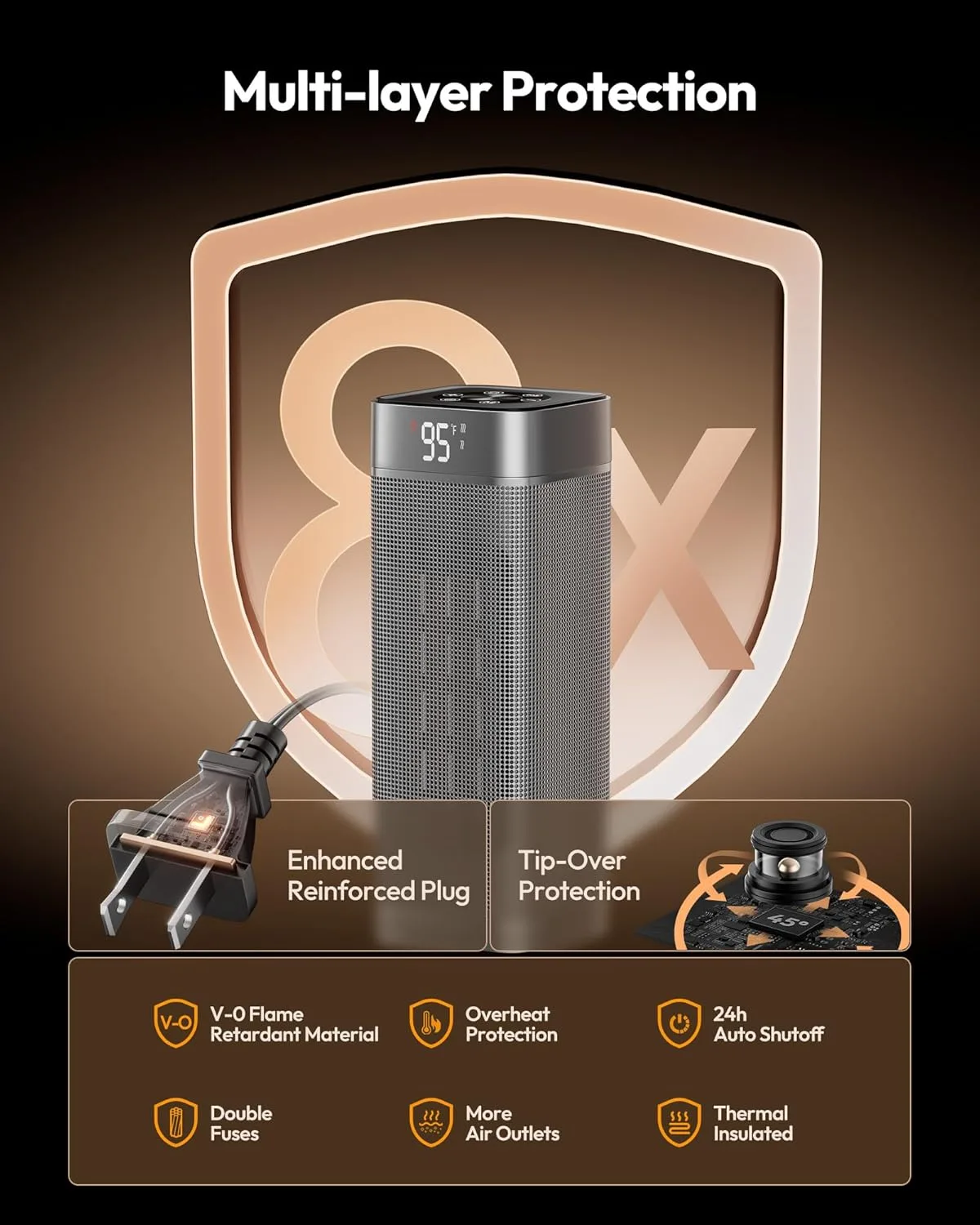 Ultimate Fast Heating and Widespread Warmth: The space heater combines 1500W PTC heating system with powerful 3,000 rpm/min wind wheel, cut the wind more efficiently by high-speed brushless DC motor, provides fast warmth in seconds. This portable heaters with 50% more hot air vents enhances warm air circulation for up to 200%, farther reach than traditional heaters. 60° wide oscillating helps distribute warm air more evenly to all corners of the room, allowing you to enjoy the warm air from any angle, making the cold rooms into cozy spaces