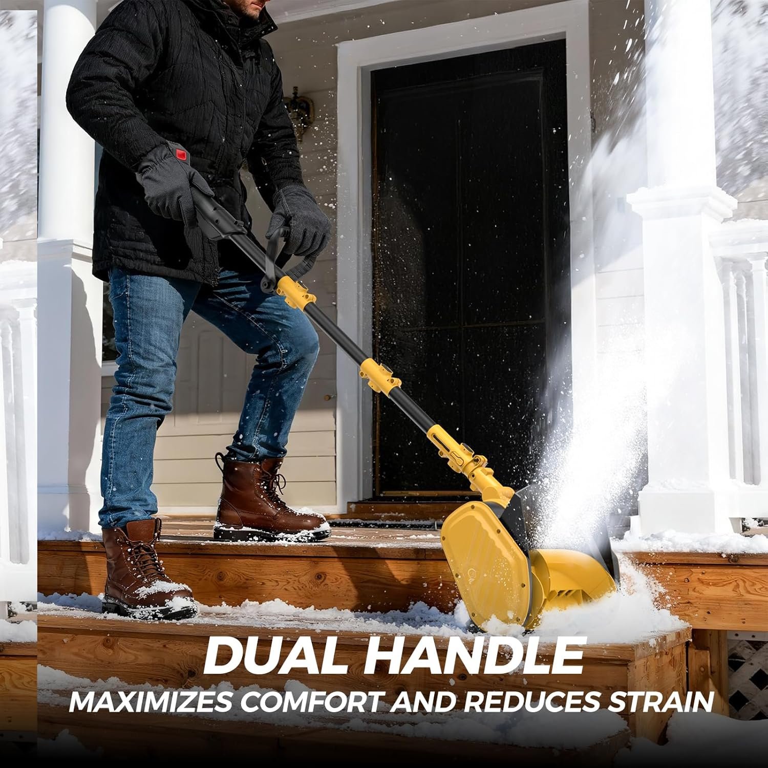 【24V High Power & Dual Batteries】This powerful electric snow shovel is powered by a 24V motor and TWO 3.0Ah batteries, working as a robust power snow shovel to throw snow up to 25FT. Enjoy up to 60 mins of continuous snow removal.