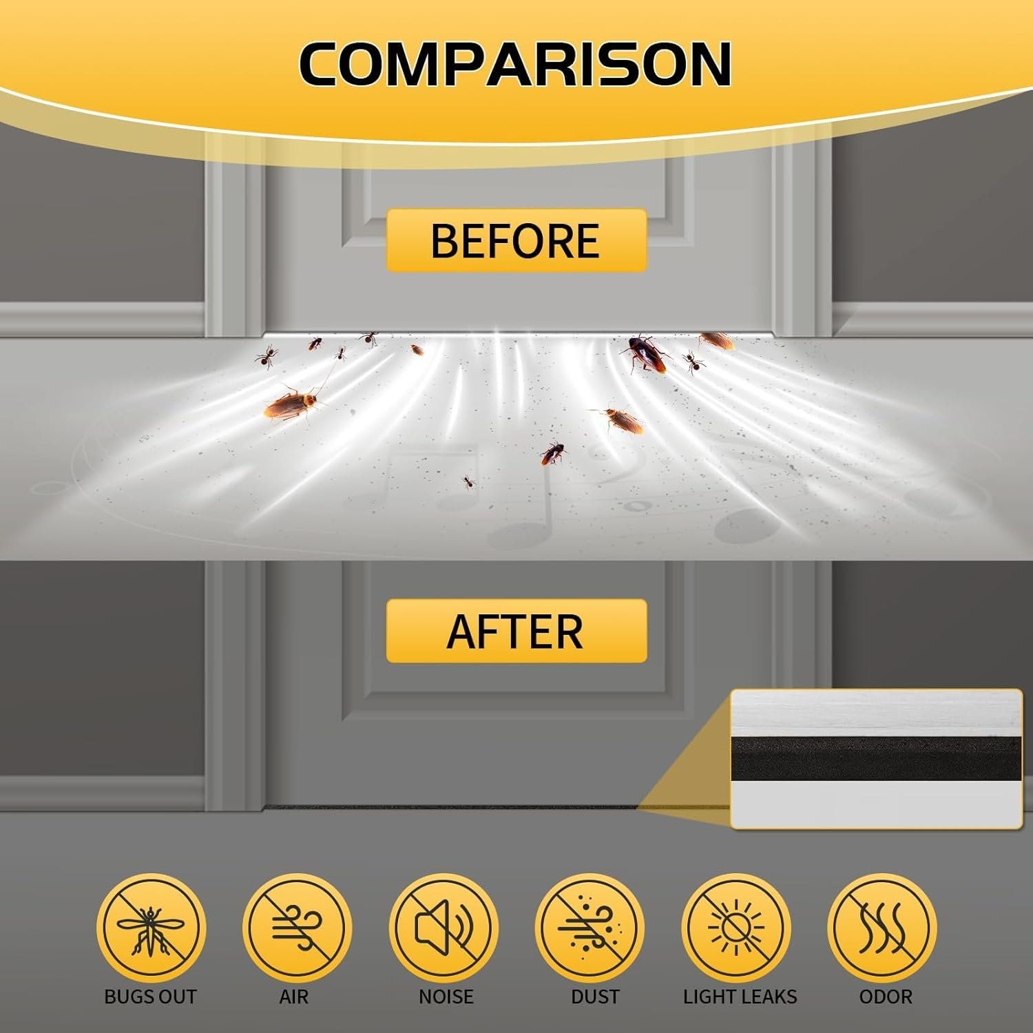 Multi-Functional Protection: This door weather stripping provides soundproofing, windproofing, dustproofing, and shock absorption. It helps reduce drafts, noise, and airborne particles that can pass through gaps—enhancing indoor comfort and minimizing surface wear on doors and windows.