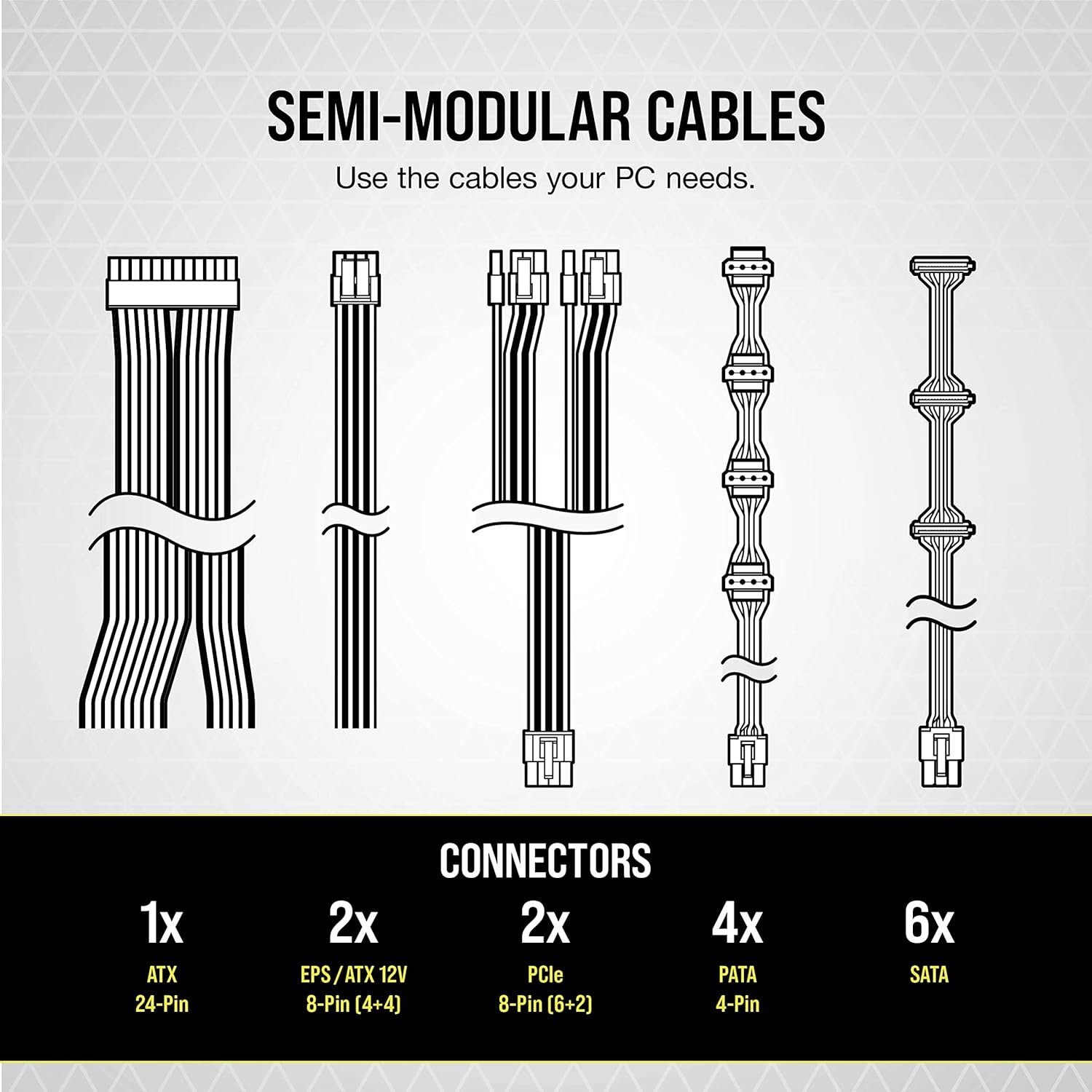 Semi-modular cabling with Dual EPS12V connectors lets you connect only the cables you need for a clean build with easy cable management.