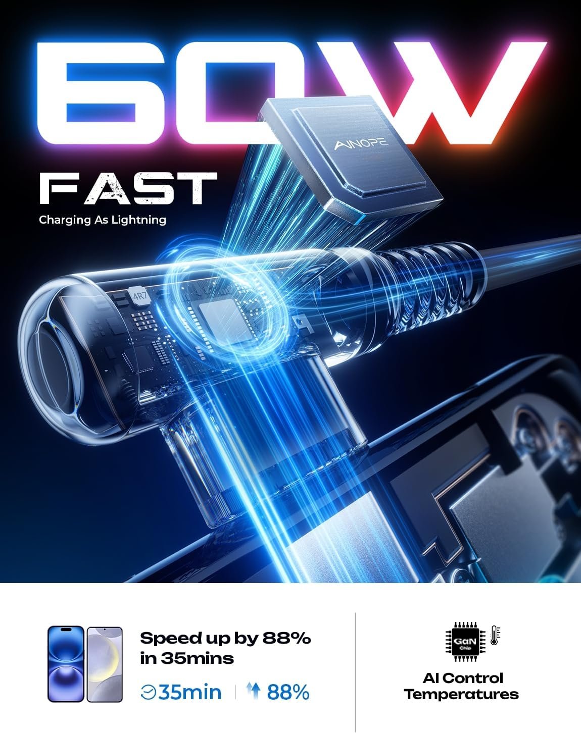 AINOPE USB C to USB C Cable 60W 2Pack 6.6ft C to C Cable Fast Charging Type C Charger Fast Charging Right Angle