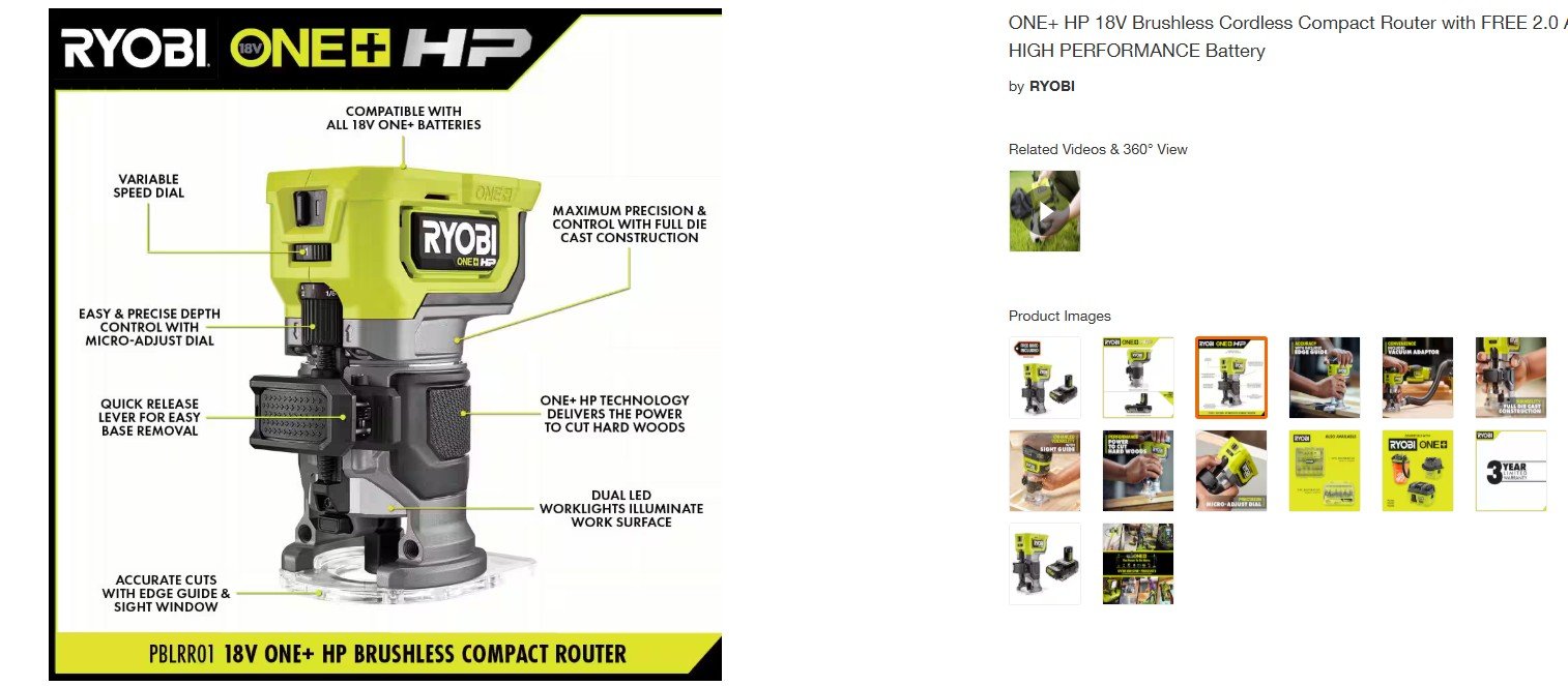 Includes: 18V ONE+ Brushless Compact Router with Accessories