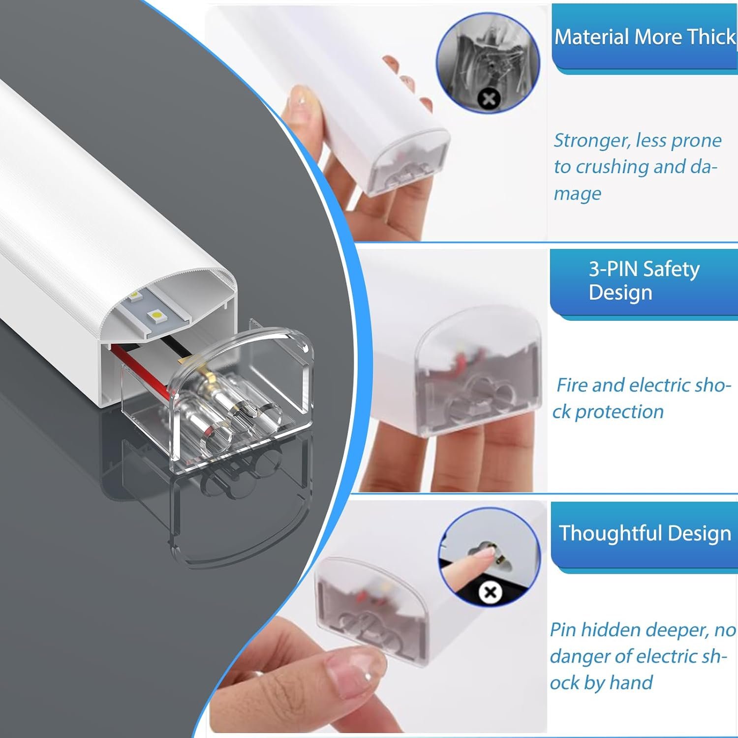 3-PIN DESIGN for HIGH SAFETY: Compared with other products, our hexagonal garage light has redesigned the connector part. In order to prevent fire electric shock on lightning and rainy days, we deliberately use 3-PIN design (including ground wire), which is safe and can be used with confidence.