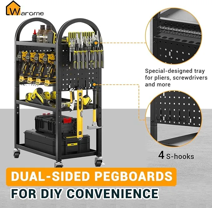 Warome Power Tool Organizer for Garage,Heavy Duty Tools Holder Storage Rack On Wheels,Floor Standing Rolling Power Tool Cart for Storage and Organization
