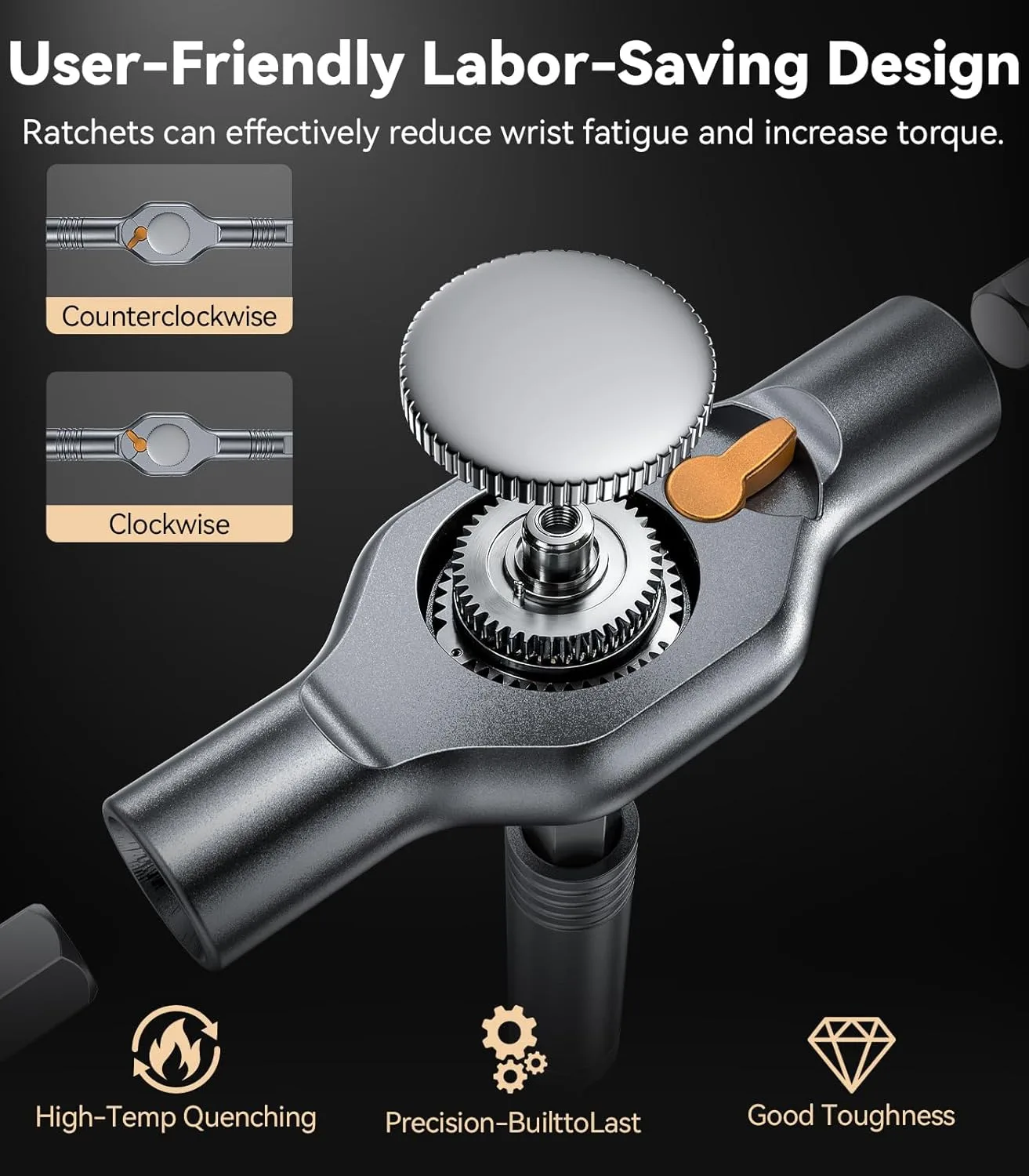 [Precision Drive, Maximum Effort Reduction] Featuring a high-precision 58-tooth ratchet mechanism, it requires only a 6.2-degree micro-swing for efficient drive. This innovative design eliminates the need to constantly reposition your grip, allowing for smooth and effortless tightening or loosening of screws, and minimizes operator fatigue to the greatest extent.