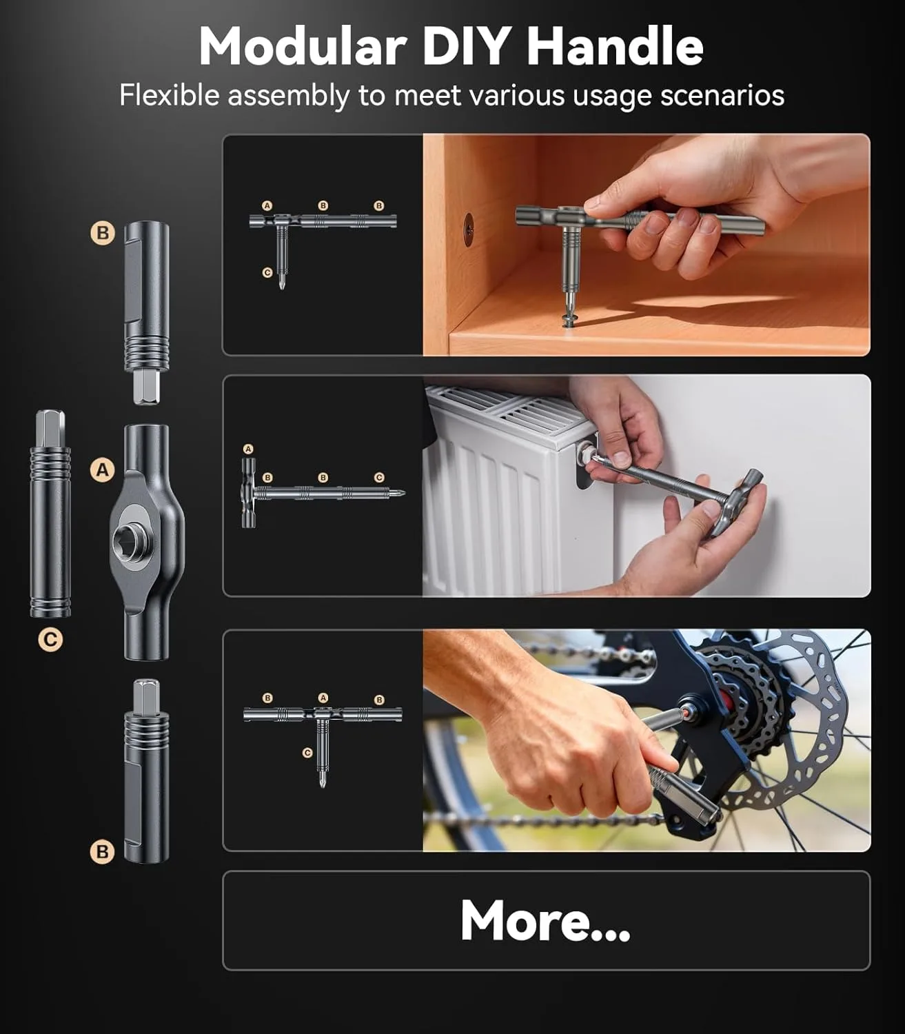 [Tight Spaces Effortless] Different from traditional screwdrivers, this product is equipped with a removable aluminum alloy T-shaped handle. Customize your grip with interchangeable parts to tackle tight spaces like furniture joints or appliance backs. The T-handle provides better leverage for tough screws, reducing strain during extended use.
