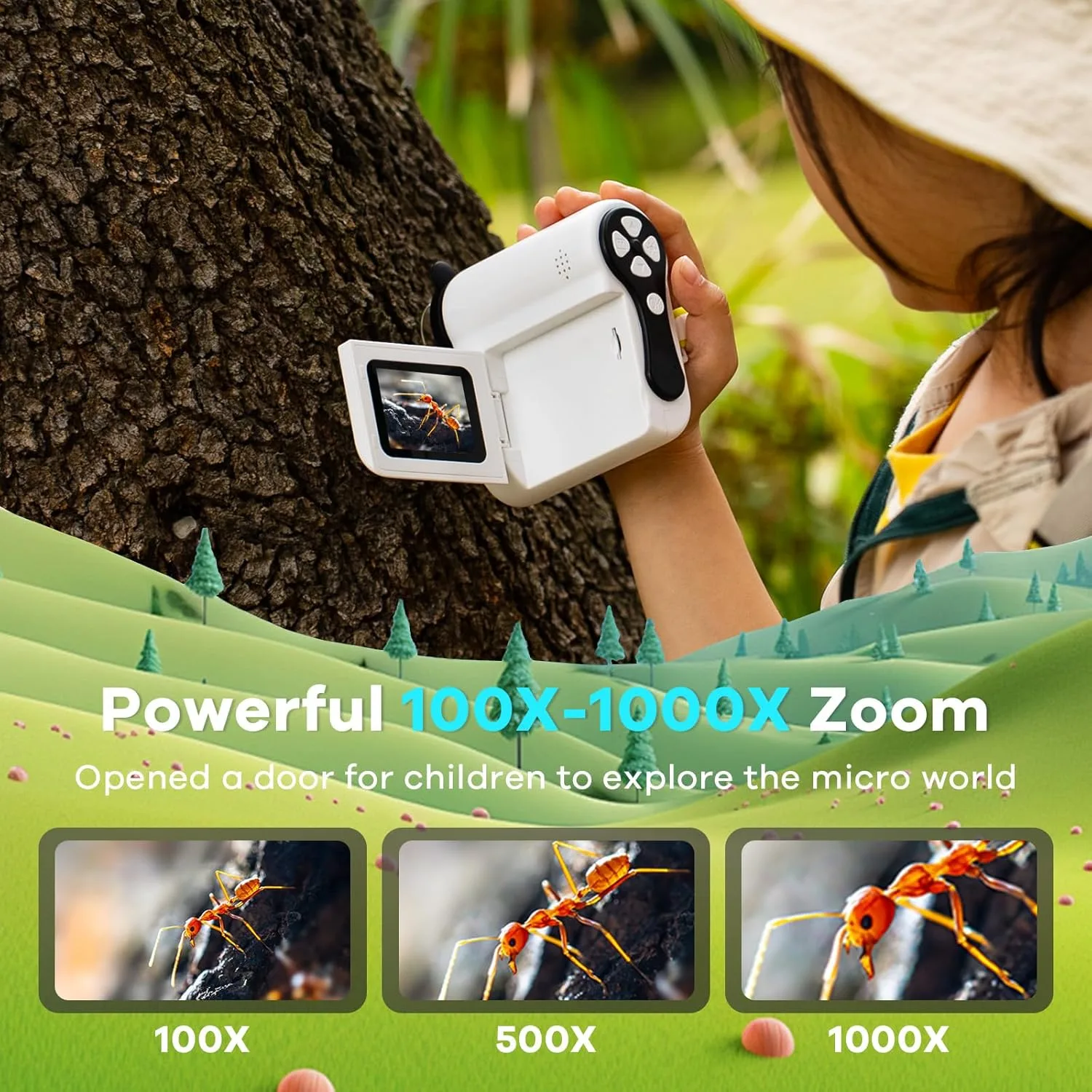 Auto On & Off: This microscope for kids powers on when the screen is flipped open and off when the screen is closed—effortless exploration at your fingertips! From backyard tiny living things to hidden textures, kids can dive into discovery anytime with no buttons, making science spontaneous and exciting