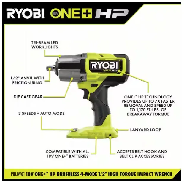 ONE+ HP Technology Delivers Up To 1,170 ft./lbs. Breakaway Torque